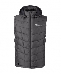 100% polyester nail head weave fabric ; Detachable hood with bungee cord and stopper ; Active fit; Invisible zipper inside chest for embroidery access ; Zippered handwarmer pockets
