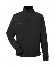 93% stretch polyester, 7% elastane double weave; Brushed interior 75% recycled polyester, 25% polyester ; Exposed, reverse coil zipper; Internal draft flap ; Debossed Spyder neck tape & internal locker loop; Forward-set shoulder seams; Stylized back yoke; Interior stretch storm cuffs with thumb holes; Adjustable cuff tabs; Reverse coil left-chest & hand pockets; Hem cinch-cord;